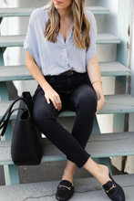 O te quedes solamente con una camisa de vestir, ya sea clásica o un tanto coqueta.